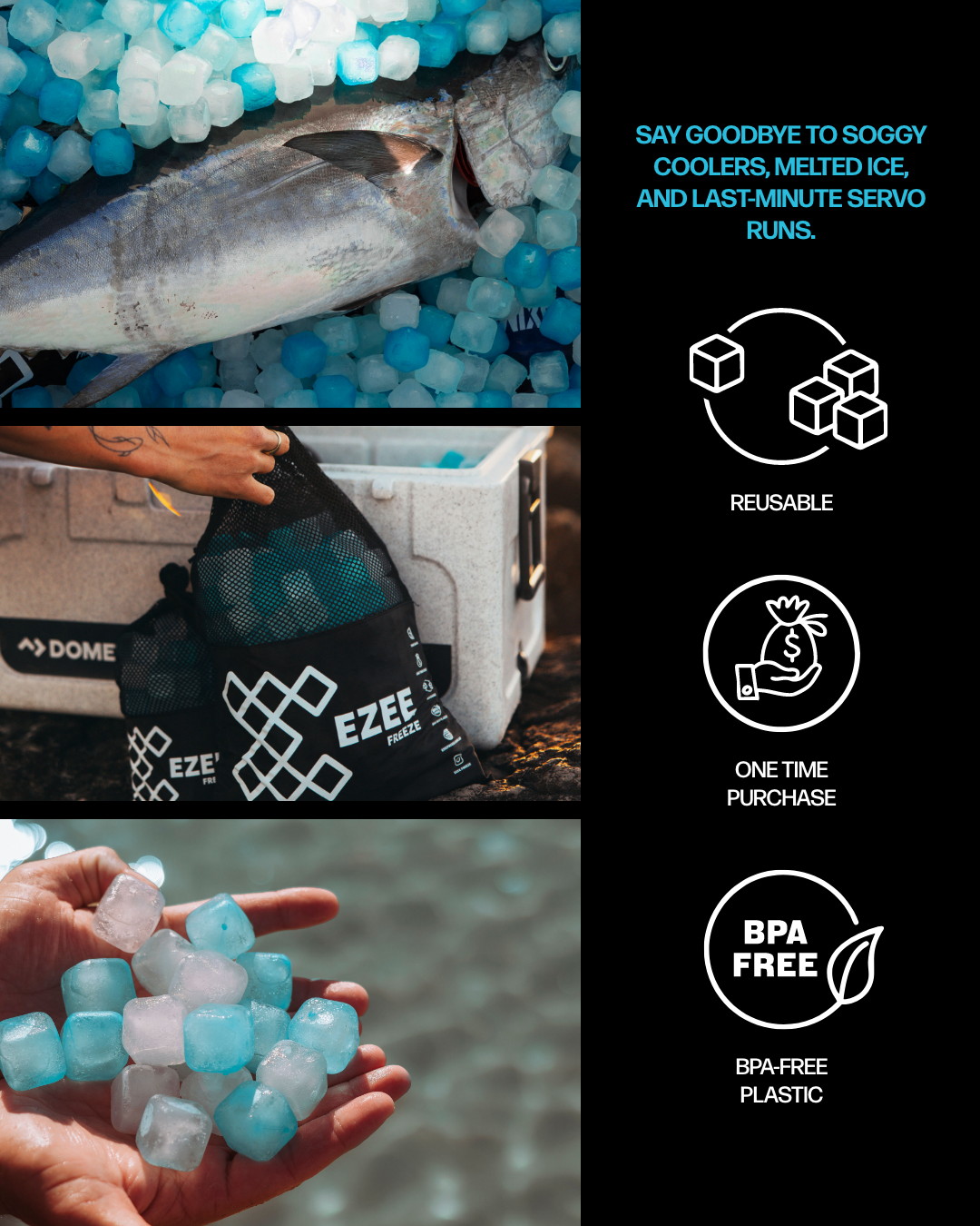 - As a reusable bag of ice, Ezee Freeze cools without melting into pooled water.